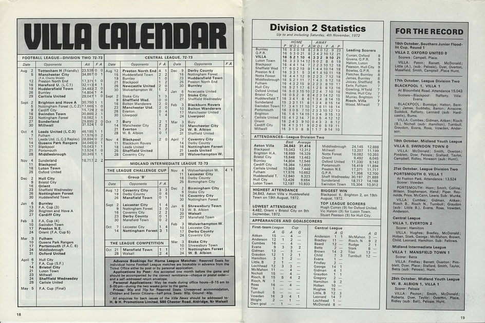 ๐จ 11 Nov 1972, Villa 0-0 Blackpool, Villa Park