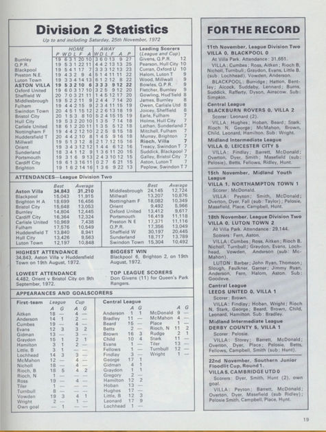๐ฉ 2 Dec 1972, Villa 2-0 Hull, Villa Park