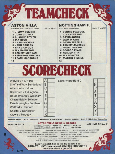 Darren Hunt for the kind permission to use his collection of historic Villa programmes. https://www.flickr.com/photos/astonvillaprogrammes