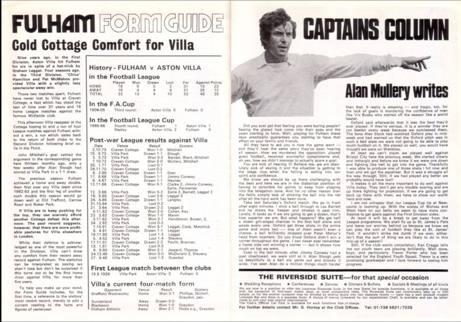 ๐ฅ 2 Nov 1974, Villa 1-3 Fulham, Craven Cottage