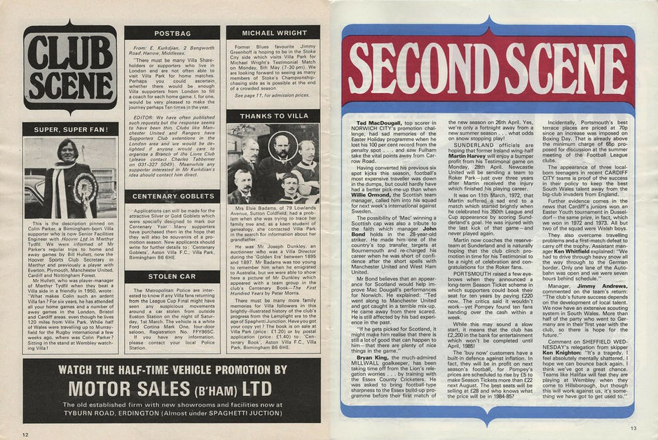 Darren Hunt for the kind permission to use his collection of historic Villa programmes. https://www.flickr.com/photos/astonvillaprogrammes