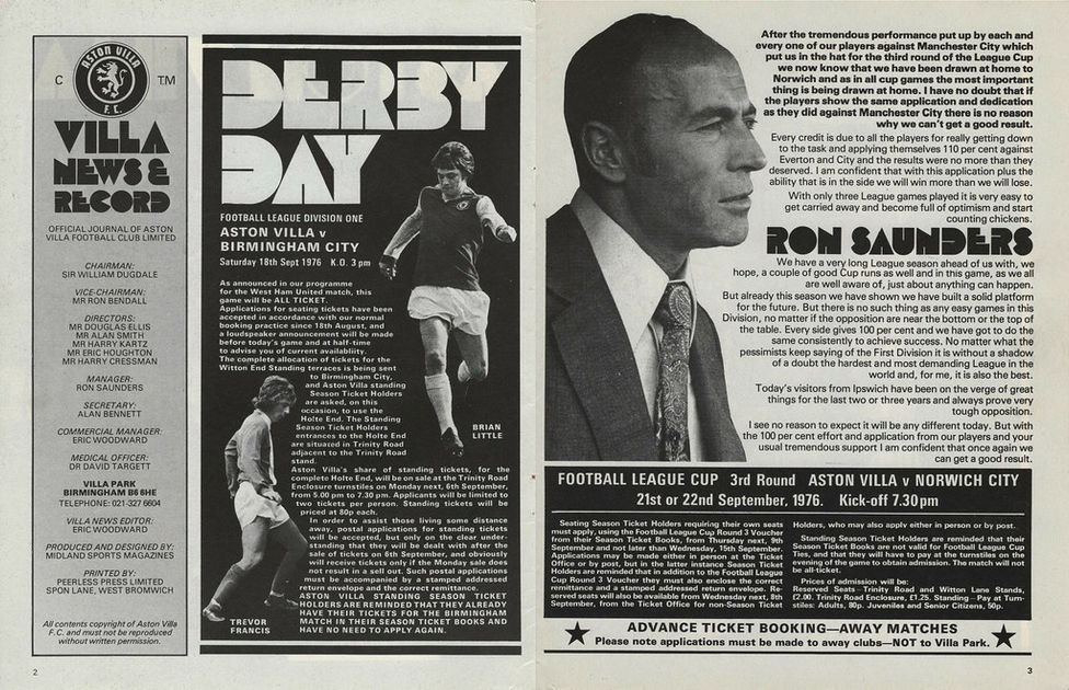 Darren Hunt for the kind permission to use his collection of historic Villa programmes. https://www.flickr.com/photos/astonvillaprogrammes