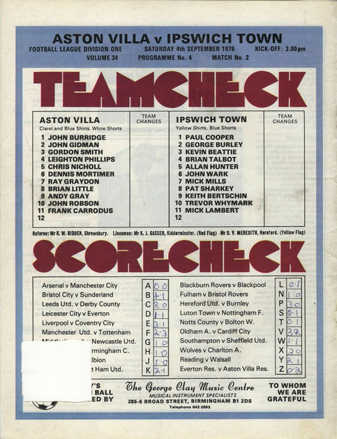 ๐ฉ 4 Sep 1976, Villa 5-2 Ipswich, Villa Park