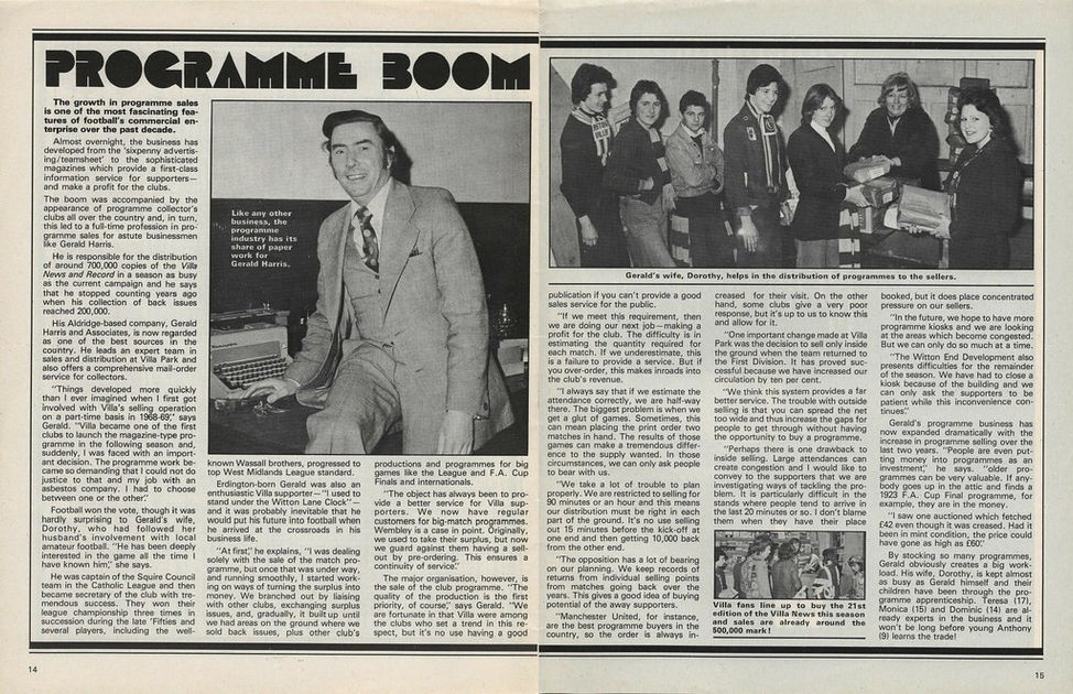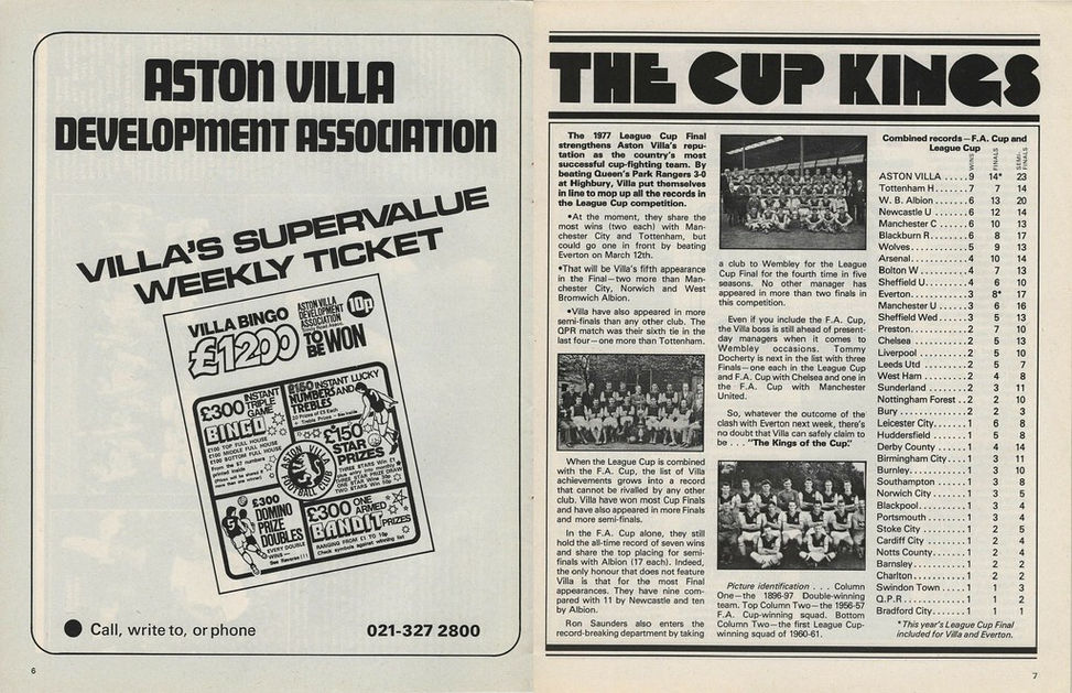 Darren Hunt for the kind permission to use his collection of historic Villa programmes. https://www.flickr.com/photos/astonvillaprogrammes