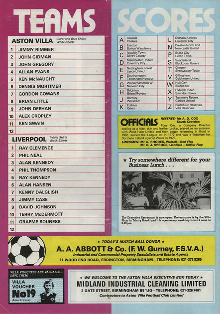 ๐ฉ 16 Apr 1979, Villa 3-1 Liverpool, Villa Park