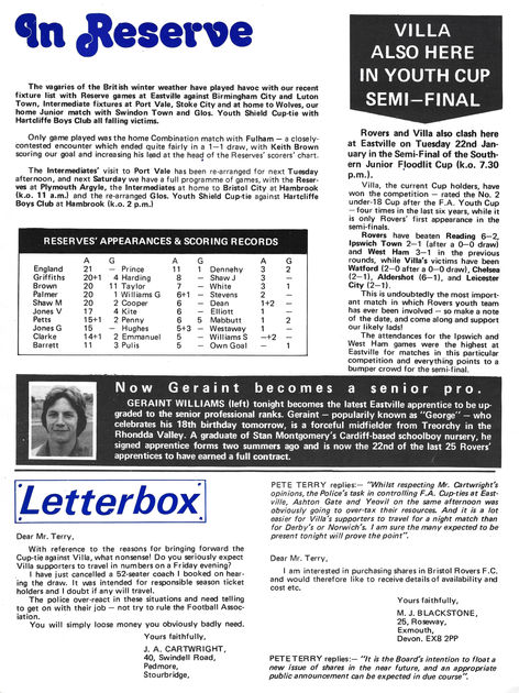 ๐ฉ 4 Jan 1980, Villa 2-1 Bristol Rovers, Eastville