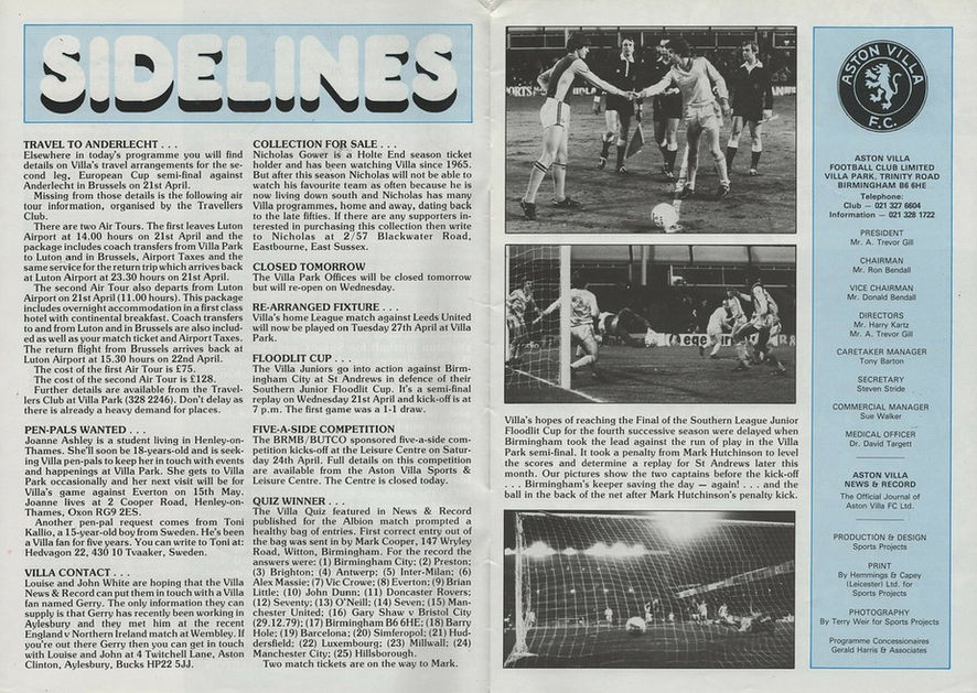 Darren Hunt for the kind permission to use his collection of historic Villa programmes. https://www.flickr.com/photos/astonvillaprogrammes