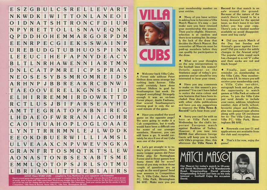 Darren Hunt for the kind permission to use his collection of historic Villa programmes. https://www.flickr.com/photos/astonvillaprogrammes