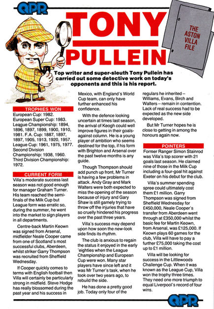 ๐ฅ 30 Aug 1986, Villa 0-1 QPR, Loftus Road