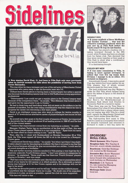 Darren Hunt for the kind permission to use his collection of historic Villa programmes. https://www.flickr.com/photos/astonvillaprogrammes