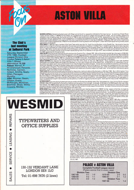 ๐จ 9 Apr 1988, Villa 1-1 Palace, Selhurst