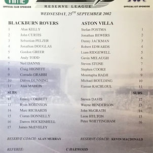 ๐ฉ 25 Sep 2002 Blackburn 1-2 Aston Villa