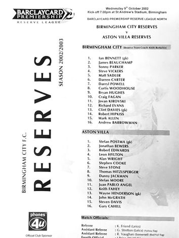 ๐ฉ 9 Oct 2002 Birmingham 0-2 Villa