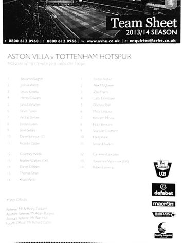 ๐จ 16 Sep 2013 Villa 1-1 Spurs
