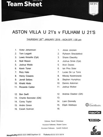 🟩 28 Jan 2016 Villa 1-0 Fulham