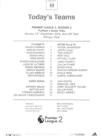 🟥 21 Sep 2016 Fulham 3-0 Villa
