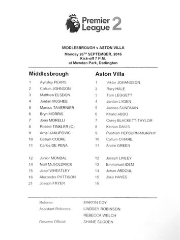 🟩 26 Sep 2016 Boro 1-2 Villa