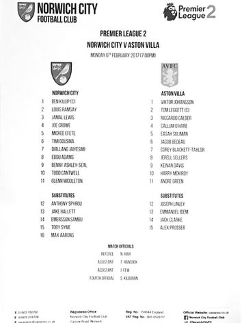 🟩 6 Feb 2017 Norwich 0-1 Villa
