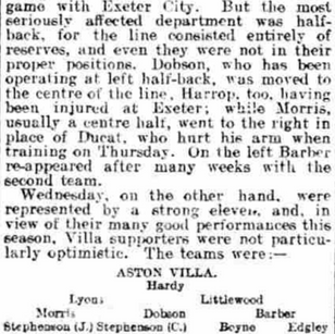 Bill Morris, Tommy Barber, Jimmy Stephenson and Reg Boyne replace Jim Harrop, Andy Ducat, Charlie Wallace and Joe Bache.
