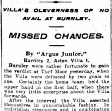 ๐ฅ 22 Feb 1915, Villa 1-2 Burnley, Turf Moor