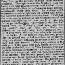 The visitors in the first half played from the Wellington Road goal, and were very quickly near the Villa, goal.