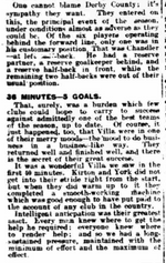 Billy Walker hits his second hat-trick of the season as Villa see off second division Derby in the first round of the FA Cup at Villa Park but it's the wing play and delivery of Dicky York and Arthur Dorrell that really catches the eye.