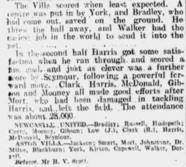 Villa open 1924 with a disappointing defeat to Newcastle as they concede four for the first time this season and end the game with only 9 fit players with their only goal in reply coming from Billy Walker.