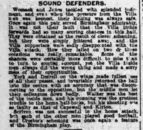 Villa are reduced to nine almost from the off as Birmingham's roughhouse tactics come to the fore, back to 11 men Villa run the first half and Birmingham ragged but cannot make the deserved breakthrough.