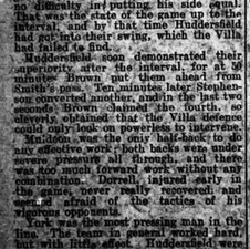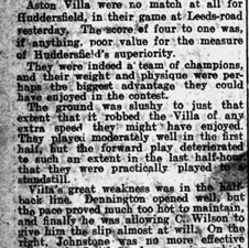Billy Walker scored his third goal in two as Villa take a 2' lead at league leaders and reigning champions Huddersfield but from there the contest ends as the home team dispatch Villa with ease.