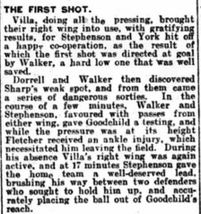 Villa record a second win in three thanks to goals from George Stephenson (pictured) and Billy Walker to make it ten wins, twelve draws and fourteen defeats in thirty six division one games.