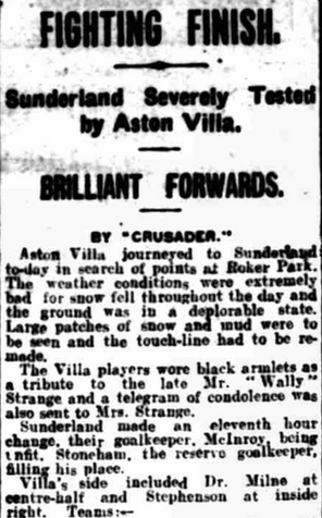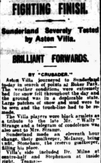 Despite Len Capewell twenty second goal of the season Villa lose consecutive games as they are beaten at Roker Park to make it eight wins, seven draws and five defeats in their twenty division one matches.