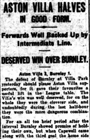 Len Capewell scores a brace as Villa extend their unbeaten run in all competitions to five, winning four and are now unbeaten in three League games for the first time since November to make it ten wins, five draws and twelve defeats in their twenty seven division one games.