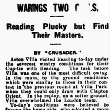 Pongo Waring scores a brace with each goal coming a minute before time at the end of each half to make it eight in four games as Villa see off division two side Reading in the fifth round of the FA Cup.