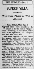 ๐ฉ 6 Sep 1930, Villa 6-1 West Ham, Villa Park