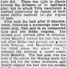 Eric Houghton scored his TWENTY THIRD goal of the season as Villa hammer the team with three names to make it six games unbeaten and five wins and seventeen wins, eight draws and six defeats in their thirty one division one games having scored NINETY EIGHT goals.