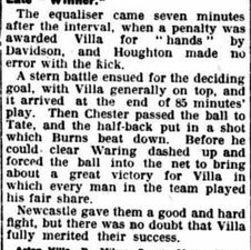 Scorer(s) | Billy Walker | 33' | 40' | Eric Houghton | 52' (pen) | Pongo Waring | 85' |