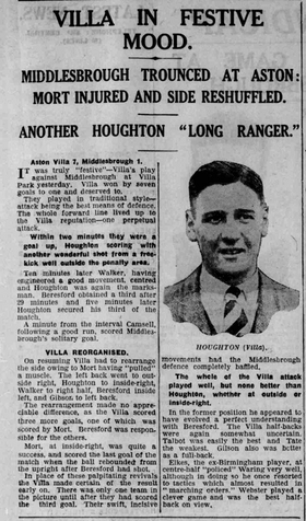 Eric Houghton and Joe Beresford score hat-tricks as Villa stop a run of ten goals conceded to hit Boro for seven at Villa Park