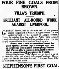 George Brown hits his tenth goal in three games as he scores four and creates one to inspire Villa's battering of Liverpool.