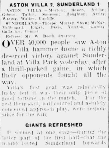 ๐ฉ 23 Sep 1933, Villa 2-1 Sunderland, Villa Park