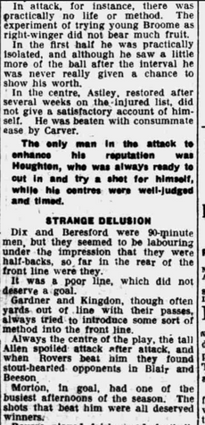 There were highlights, the emergence of Frank Broome for one, but goalscoring was far less of an issue that concession. Ironically McMullan dropped Frank Broome for the game at Ewood Park for a player hitherto suffering from injury, only to be recalled to the team at the 11th hour when that player, Archie Watkins, inevitably broke down. Hardly an endorsement of his managerial judgement.
