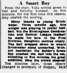 Left back George Cummings, winger Charlie Drinkwater and forward Jack Palethorpe made their Villa debuts aged 22, 21 and 25 after moving from Patrick Thistle, Walthamstow Avenue and Sheffield Wednesday earlier this month. Both Drinkwater and Palethorpe marked their debuts with goals.