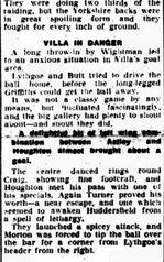 Meanwhile off the pitch rumours abound that the management committee could be replaced by former Villa player Andy Ducat as manager, however former manager / secretary Billy Smith categorically denies that Villa have even considered appointing another manager following the chastening experience under Jimmy McMullan.