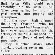 ๐จ 16 Feb 1938, Villa 2-2 Charlton, Villa Park