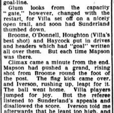 Frank Broome scores for the fourth time in five but Villa are held by the team they had put five past the previous day.