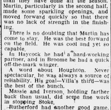 From the first minute Villa pummel Stoke with aplomb as shot after shot rains down on the Stoke goal but what takes the attention is the curious performance of referee Tucker who refuses or ignores two valid penalty appeals in the first and second half.