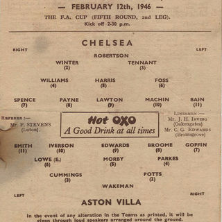 ๐ฉ 12 Feb 1946, Villa 1-0 Chelsea, Villa Park