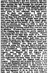 The play in the first half was very open, and neither side could claim any advantage. The Villa defence was strong, and their attack nimble. half way through the game no goals had been scored.