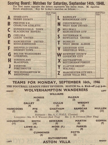 ๐ฉ 16 Sep 1946, Villa 3-0 Wolves, Villa Park