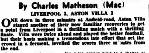๐จ 6 Dec 1947, Villa 3-3 Liverpool, Anfield