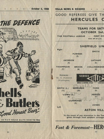 ๐ฉ 2 Oct 1948, Villa 4-3 Sheffield United, Villa Park